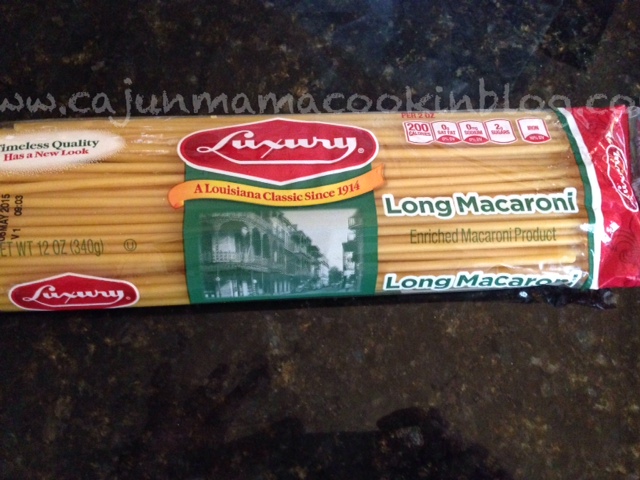 If you have been following Cajun Mama Cooks for a while on facebook or have known me any amount of time, you know about the entity that is Momou’s Mac and Cheese.  My kids knew about this stuff as soon as they could eat solid food.  My babies all love it and ask for it on a monthly if not weekly basis.  This is the epitome of comfort food.  Nothing else comes close.  If you know me at all, you know all about Momou. Momou is my dad’s mom.  Her name is Narcille and I am not sure there is anyone on this Earth whom I adore as much as her.  I share a birth month with her.  Our birthdays are 5 days apart and I love my birthday, but I love that we share that even more.  She is one fine lady and I love her so much.  My husband loves her so much.  My kids love her so much.  Everyone who knows Narcille, or Nar, or Nice as my grandfather called her, loves her.  I again am beyond blessed to be able to call that woman my grandmother.  And can she cook.  Boy can she ever!!  And loved to do it.  She made this macaroni  and cheese for almost every occasion and just regular old Sunday dinner. You knew when she had the pyrex dish out and she had some of those luxury noodles boiling, you were about to be in for a treat.  When I first got married, Momou, my Nana, Aunt Lee and my mom came to my house and they taught me how to cook Momou’s mac and cheese.  That is one of my fondest memories as a grown up.  I cherish that night always and on cold days when I feel uprooted and out of place, that memory gives me comfort like a warm blanket.  This mac and cheese has spanned generations and now has been made famous in my own kids’ minds.  They know the story behind it and that it belongs to Momou.  They have not been a part of many of dinners at Momou’s because since they have been born, she has slowed down some and now lives in a nursing home.  But they know.  I love that when I cook this macaroni and cheese, they talk about their Momou and what they love about her.  It shows me that even if they have not eaten this dish at her house, per say, they associate this wonderful dish with the wonderful woman who has passed it down to us.  That is what matters most to me.  I have been reluctant to share this recipe because it is very special to my family.  But, after soul searching, I know that Momou would be so glad for me to share it.  She is above all things, a giving, loving person who wants to make others happy.  So I will share.  This is truly love in a 9 x 13 dish.  It is a perfect partner for a pork or beef roast and rice and gravy, an excellent side for turkey and dressing, and a delicious accompaniment to chicken fricassee.  I have never made it for anyone who did not love this stuff and ask if I would be serving it the next time they came to dinner.  I have had several people ask for this recipe and if you are one of them…here you go!! Now, the noodles…as far as I am concerned, these are the only noodles to make Momou’s mac and cheese with.  You can of course make it with any noodle, but I refuse.  I don’t care to change this recipe up one bit.  It is perfect as it is.  Just like Momou.  You don’t mess with something this wonderful.  Well, I don’t.  I have the most luck finding these noodles at our local target.  They are Luxury brand long macaroni noodles.  I have found them at some Wal-Marts.  When I do find them, I buy at least 5 packages of them at a time.  Just a suggestion.  Because you should always be ready to whip up some Momou’s mac and cheese.