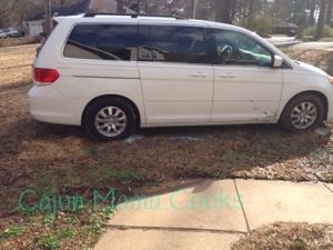 The day started out ok. I had a friend who will begin hosting my blog soon over for brunch to talk a little business and a lot of mommy talk (she is pregnant with her third and I have lots of wisdom to offer). I tried several new brunch recipes and they were fabulous and definitely blog worthy so that is great. Then she left and that’s when it took an ugly turn. I get in my car to go get the kids. Left early enough to get there fine. Except I never actually left. I was backing out of our driveway which is a little long and decide for fun I would “turn around in the yard.” I lived in the country long enough to know all about turning around in the yard. It had been a while since it rained so I thought no problem it won’t be wet. Yeah. Wrong. It hit me when I put it drive to go forward…stuck. But no matter, I thought, I’ve got this. Let me put it in overdrive. BD (big daddy) used to mud ride for a hobby so I knew I needed to back up and try again. Difference is when you are mud riding you have someone there with a winch and you can easily get pulled out. Now, normally I would have dialed BD up and made him come home and pull me out. But he left for NOLA that morning for a business trip. Yeah, that is not good. So I call my friend Cammie and sob into the phone. She tells me to get cat litter and that I have so got this. She will get the kids. I was so frustrated. And mad at myself! How stupid! And to make it worse, I kept trying to back up and go in a new direction until my car would back up anymore. So now two ruts have turned to many and it is getting worse. I get my yoga mat and try to get some traction. No. Cat litter was a no go. I tried to put it in neutral and push it. Yes by myself. (Didn’t y’all know I think I am superwoman?) Shockingly, that didn’t work. A neighbor and the garbage man tried to help. No dice. They leave. I sit in my van and cry. Feeling helpless. Then I remembered I have friends and they have husbands (also friends) who could help. So about the same time, the Calvary arrived. Here comes my friend Trey with his aptly named truck, Beast, and pulls me out. About the same time, Cammie got there with my kids. All safe and sound and excited because they got to walk home with Lulu and Kate. So we all had a laugh and all was well. Except for the huge ruts in the yard and the mud in my hair…it was ok. Oh and my yoga mat didn’t fair so well. Most of all, BD was not mad. Nope. He was laughing and asking me to send him pictures. Nice.