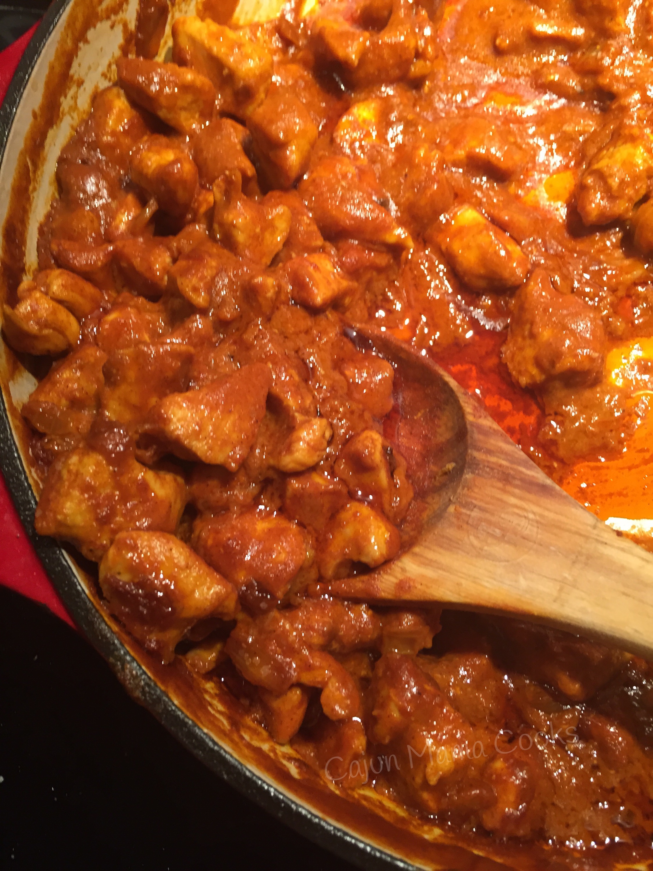 I’ve never been to an Indian restaurant before but I think I’d love it! Truthfully we have an Indian restaurant or two in town and I really need to go there. But I’ll tell you what…I bet their butter chicken chicken is not much better than this divine concoction. I cannot imagine it could be. Yes, I said Indian food. I’m Cajun, but I love this butter chicken. Which when you think about it, Cajuns have a long history with eating different exotic foods. For instance, my parents live for Lent because that means fish every Friday and that means they can indulge in their favorite goo. Gasped goo. I’d walk in the door from school and want to gag and I knew dang well they were cooking goo fish. Another example, every Father’s Day meant there would be a ponce. Also referred to as gaug “gog”…I’m writing things I cannot even spell y’all. I just know what they are. My family would go stupid over this cajun delicacy. Here is a post from Acadiana Table that will tell you more about it. It’s a real thing though. So we have a long history of eating things that are different so what’s a little Indian food to a bunch of Cajuns? Exactly! I found this recipe here . This is a great Keto dish when you steam a little broccoli to go alongside it or make some cauliflower fried rice to go with it. I use my everyday Rock Crock from Pampered Chef to steam my broccoli for 5 minutes and it comes out perfectly every single time. What makes the butter chicken so perfect is the mix of the heavy cream (fat) and butter (healthy fat) with the chicken (protein). The tomato paste does have carbs. You use very little so it is spread out over several servings. I bought the Contadina brand and it has 6 grams of carbs 2 tablespoons and in our recipe we only need 1 1/2 tablespoons. So the carbs are minimal. I’ve learned to look at labels because carbs can vary over brands. So take a few in the store to check the carbs. It’s a good way to learn! So getting down to the recipe. It’s very simple and it makes enough for your lunch the next day. Or at least for me it does because no one else in my family eats it so there’s plenty for me!😉 Butter chicken Stuff you need~2 tablespoons butter or ghee 1 pound chicken breasts, cubed 1/2 medium onion, diced (optional)2 teaspoons minced garlic 1 1/2 teaspoons turmeric3/4 teaspoons chili powder 1 teaspoon ground ginger 1/2 teaspoon cinnamon 1 cup heavy whipping cream1 1/2 tablespoons tomato paste1 teaspoon Himalayan pink salt What to do with the stuff~I combine all of my spices in a pampered chef 1 cup prep bowl and then sprinkle it all over my cubed up chicken. Use your hands to rub those spices all into the chicken. It can sit for a little while if you want to let the chicken sort of soak in those spices. But it’s ok if you don’t.